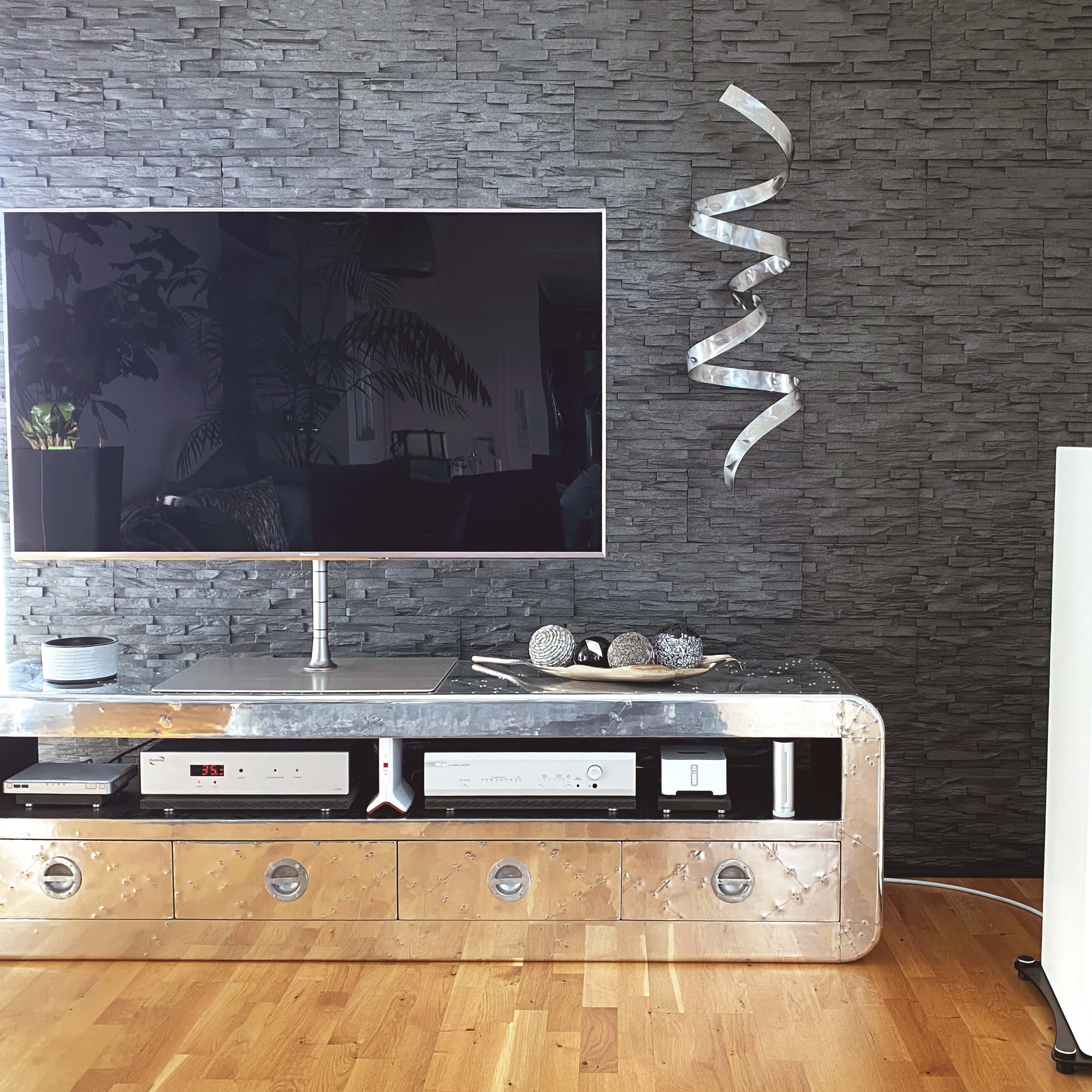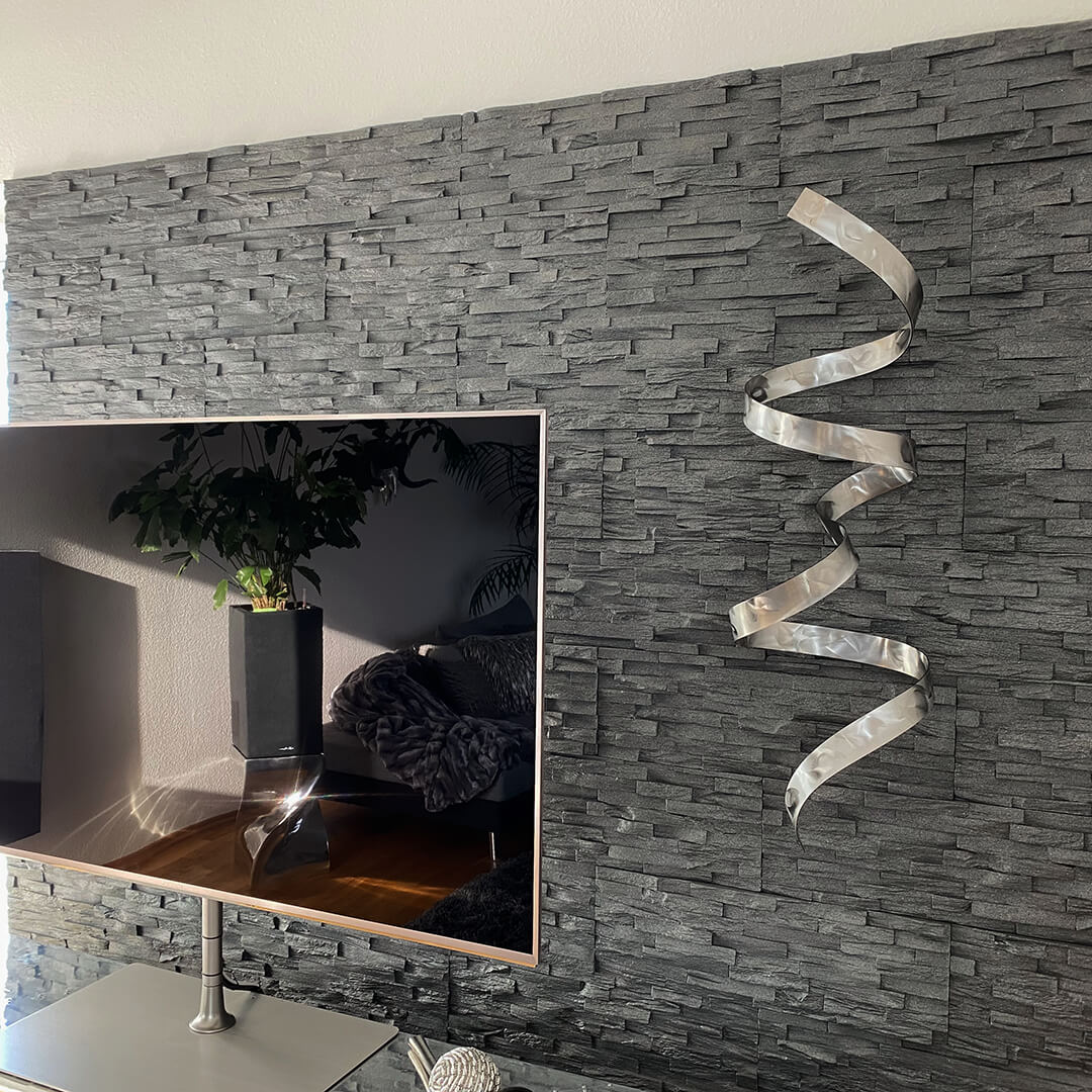 Con elegancia, una banda de metal sube hacia arriba y le recuerda a uno a una 'Danza de la cobra'. La noble escultura mural en plata convence por su figura hecha a mano y su metal brillante, que encaja perfectamente en cualquier estilo de decoración. Llene su sala de estar con una decoración de pared discreta que irradia estilo y extravagancia y también dejará a sus visitantes con ojos impresionados.