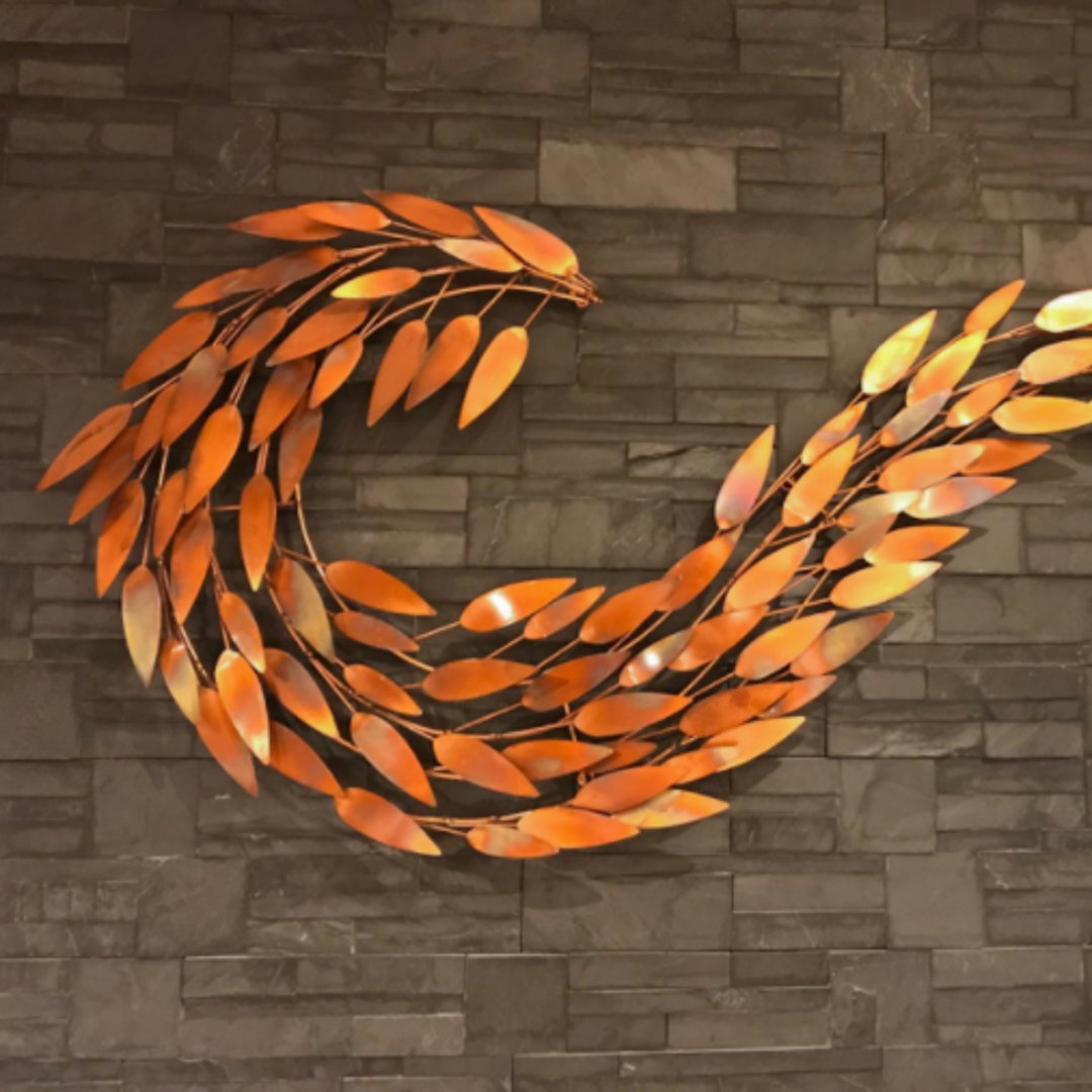 La decoración mural en metal 'Red Fox' fue soldada, doblada, rectificada y pulida a mano por nuestro artista. Esta decoración metálica tridimensional de pared brilla con colores iridiscentes y es un impresionante atractivo para la pared.