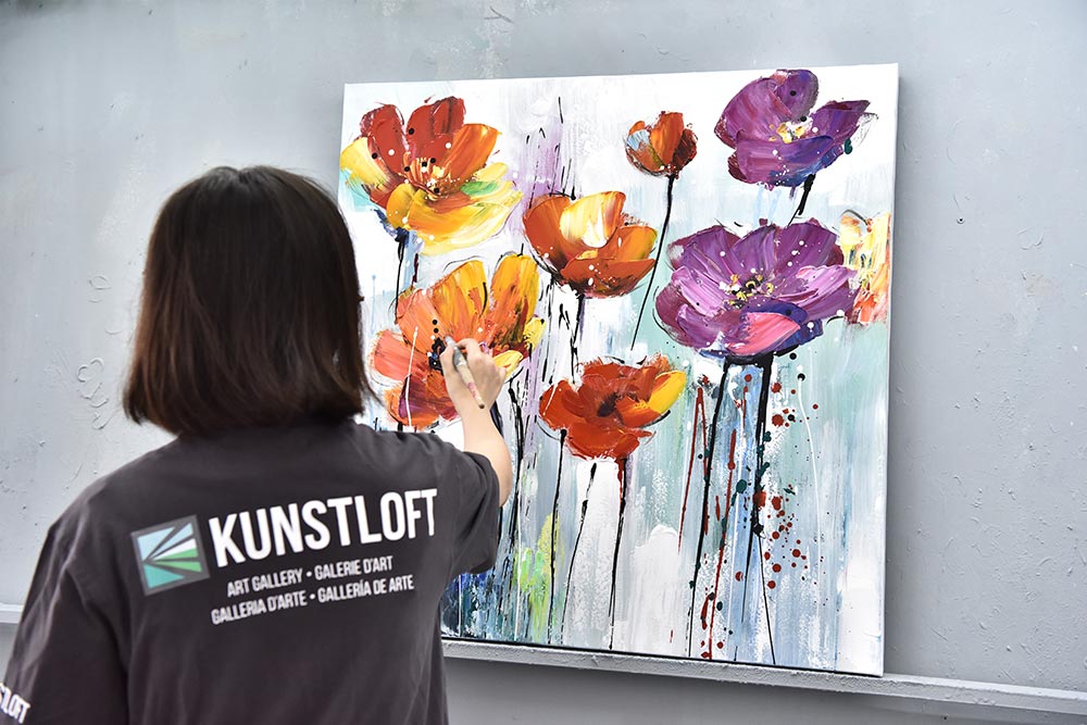 En el cuadro acrílico pintado a mano 'Coloured Flower Salute' se puede sentir cada una de las pinceladas, por lo que la alta calidad de la obra se puede apreciar a primera vista. Las obras maestras seleccionadas están firmadas por los artistas.