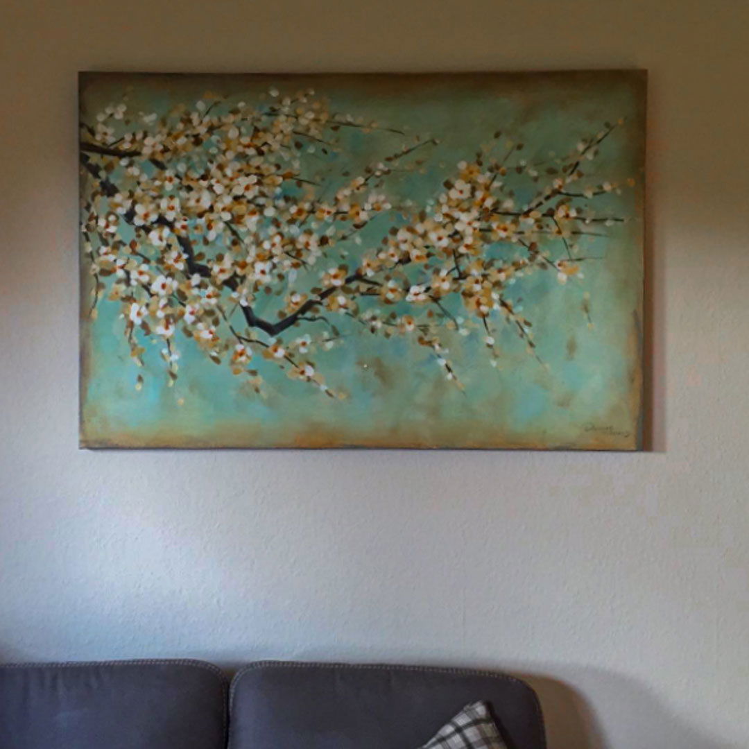 En el cuadro acrílico pintado a mano 'Cherry Blossoms' se puede sentir cada una de las pinceladas, por lo que la alta calidad de la obra se puede apreciar a primera vista. Las obras maestras seleccionadas están firmadas por los artistas.