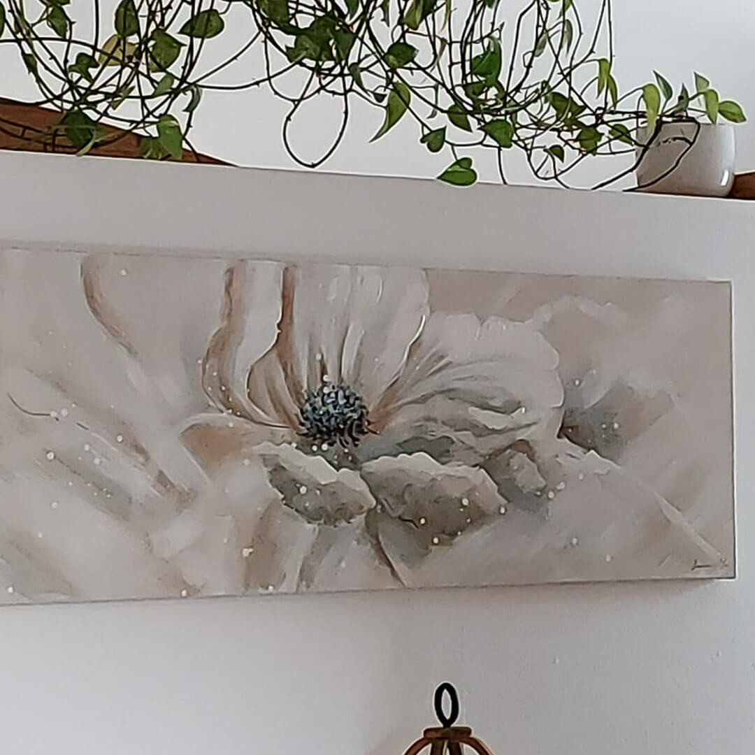 El artista ha dibujado las flores de este cuadro en acrílico con mucho 'Elfen-like': los contornos y las formas suaves aportan sensualidad y la paleta beis desata un ambiente romántico ante la vista del espectador. Lleve a los invitados de su hotel o comedor a un lugar idílico que nunca olvidarán. El espectador querrá perderse para siempre mirando las flores de esta pieza única pintada en acrílico.