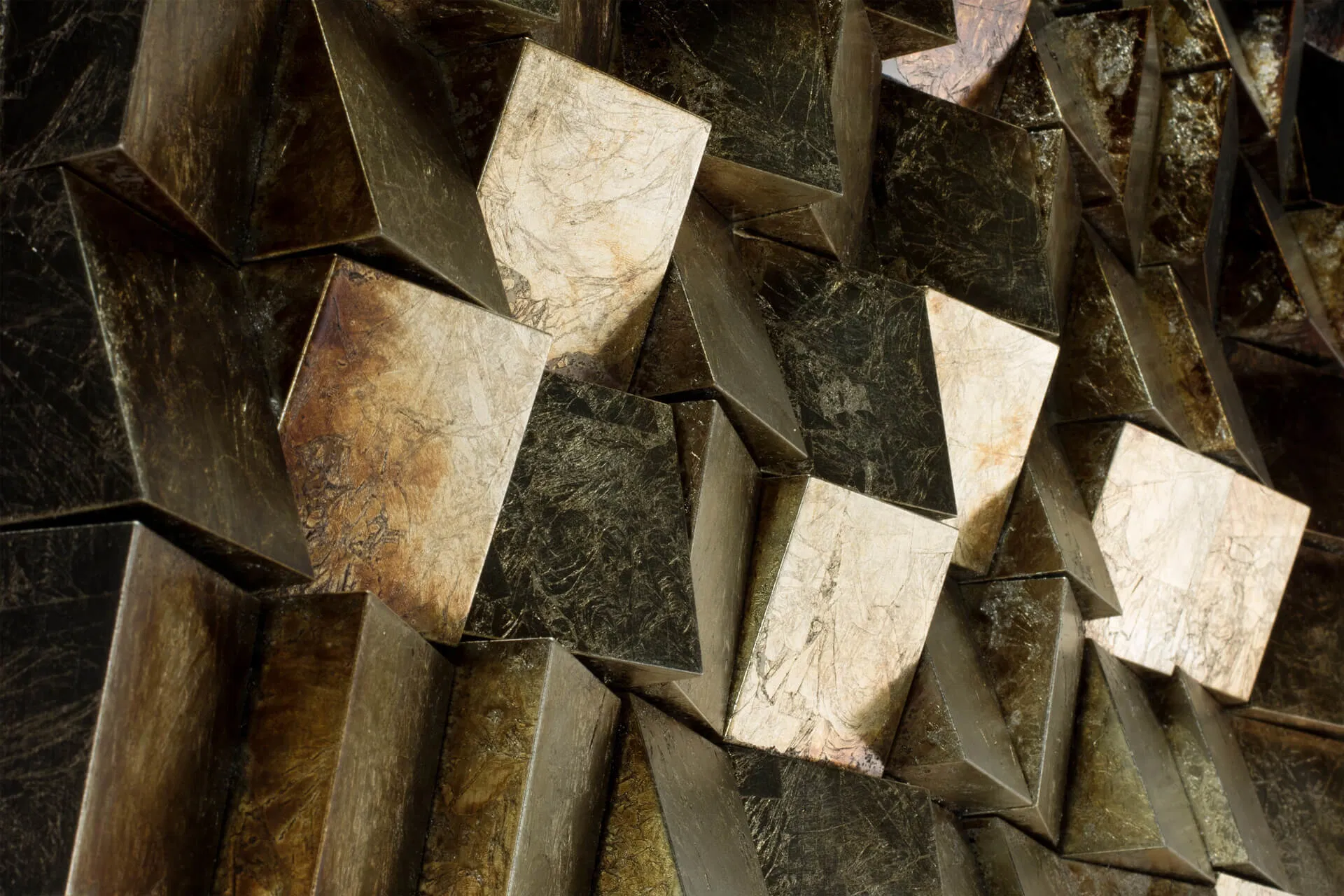 La atención se centra en la superposición de diferentes materiales, como pintura, tela, metal y madera, para crear una obra impactante. Estas obras de arte saltan literalmente de las paredes y despiertan nuevos sentidos.